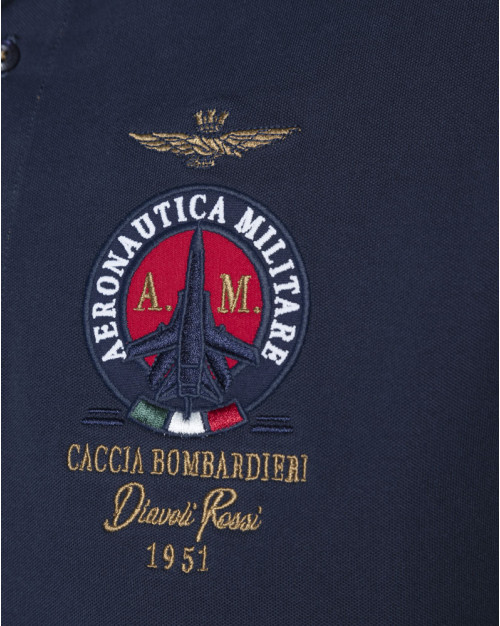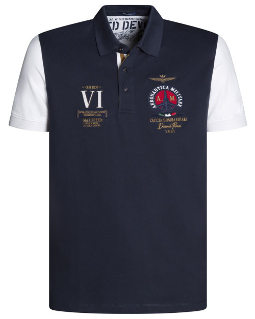 Aeronautica Militare kortærmet polo. Italy. Marine. Hvide ærmer.