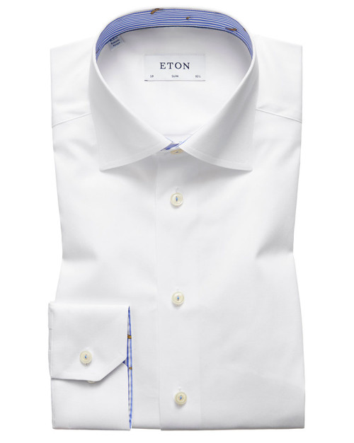 Eton skjorte. Slim fit. Hvid. Mønster i krave.
