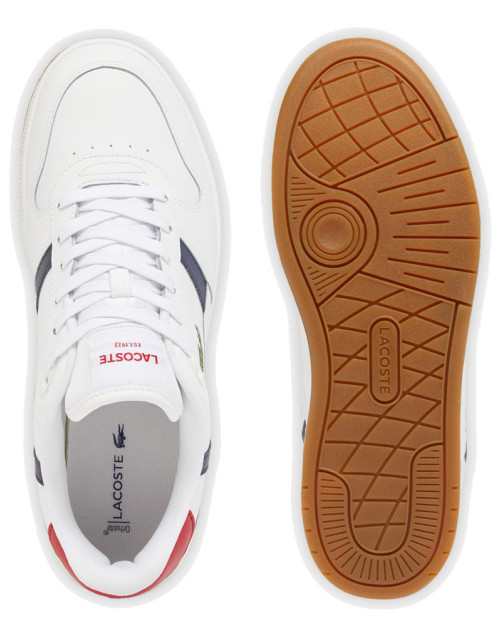 Lacoste T-clip sneakers, et moderne ikon, forfiner med en klassisk silhuet. Fremstillet med tumlet læder og ruskind, bringer den et vintage tennispræg til den tidløse hverdagssko.
