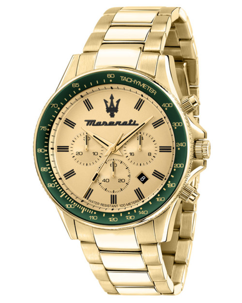 Maserati producere ur i høj kvalitet og med flot og stilrent design! Ure er produceret i guld farve, med flot grøn detalje på urskiven og er vandtæt ned til 100 m/10 ATM. Skiven er i mineral glas, som er hærdet glas, som mindsker risikoen for ridser!Se andre alternativer