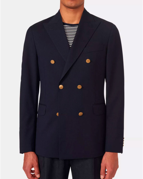 Klubjakke i mørkeblåt uldstof med struktur fra det italienske vævefirma Marzotto. En blød konstruktion. Jakken er foret og har lommer med lommeklap.Se andre alternativer