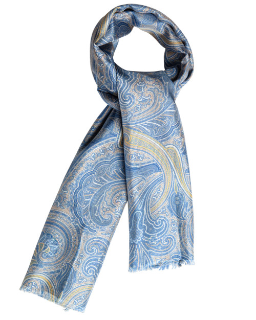 Charmeklud/Scarf til mænd. Pure Silk. Blå paisley.